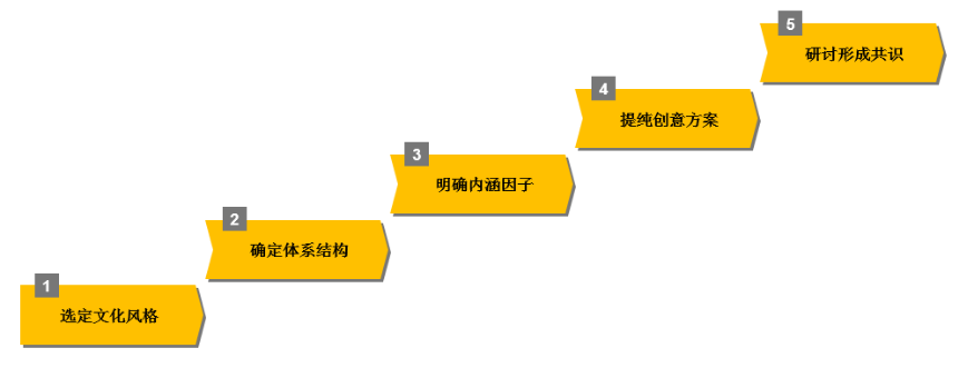 4、提純創(chuàng)意方案:由專業(yè)人士根據(jù)既定的文化內(nèi)涵提出文化理念的創(chuàng)意,并反復進行研討、提純、提升,形成文化理念體系。