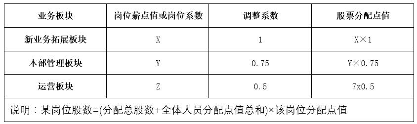 根據(jù)各業(yè)務(wù)板塊對集團未來業(yè)績增長的貢獻關(guān)聯(lián)度,參考各崗位的新點值或崗位系數(shù),結(jié)合工作條件艱苦程度,確定各激勵對象享有的虛擬股票數(shù)。