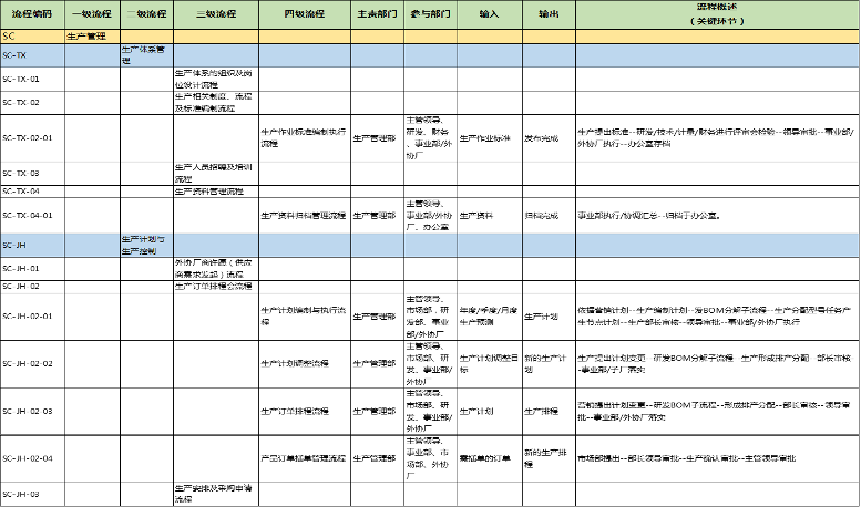 第三階段:主要為二批流程優(yōu)化、流程配套文件編寫,包含生產(chǎn)管理、采購、倉儲、交付、技術(shù)服務(wù)、質(zhì)量等流程設(shè)計(jì)(含表單)。