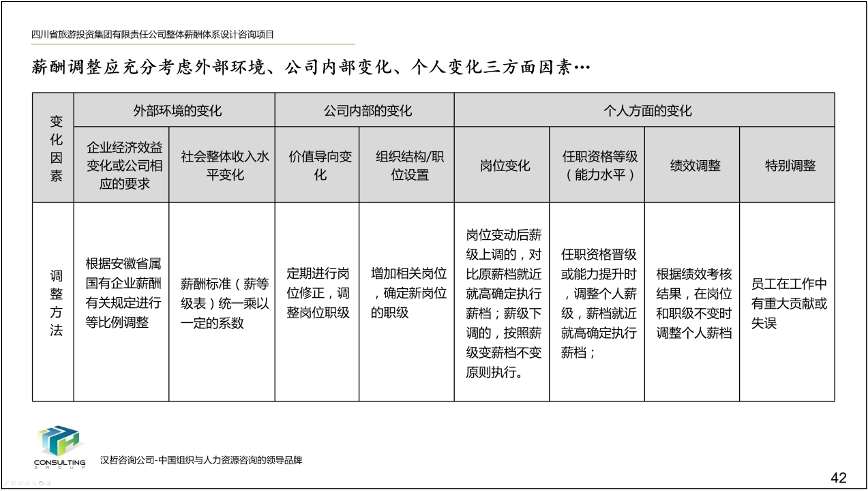 3、優(yōu)化薪酬檔位確定模式。根據(jù)集團(tuán)崗位特點(diǎn)、市場化需要以及職業(yè)發(fā)展通道的再構(gòu)建,加強(qiáng)外部環(huán)境、內(nèi)部變化和個人能力在薪酬中的體現(xiàn),明確薪酬檔位的調(diào)整模式,促進(jìn)員工能力的自我提升,從而增強(qiáng)企業(yè)的市場化競爭力。