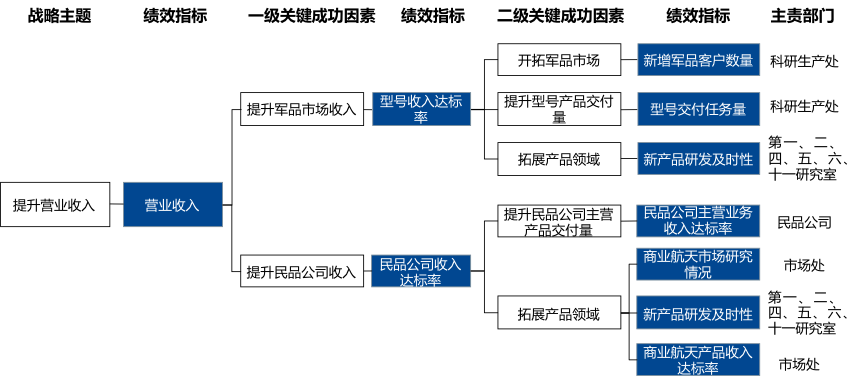 通過戰(zhàn)略解碼會將戰(zhàn)略主題層層分解,形成能夠促進戰(zhàn)略目標(biāo)實現(xiàn)的、可落地的關(guān)鍵成功因素,并對應(yīng)績效指標(biāo),確定主責(zé)部門。