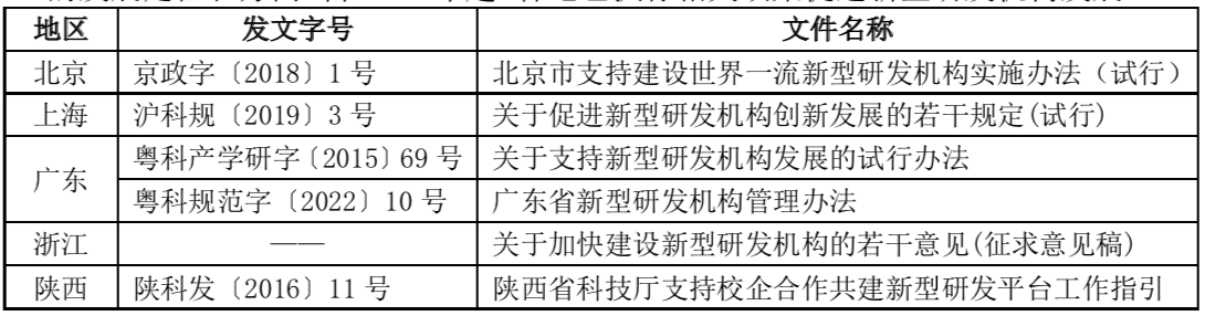 表:部分地區(qū)新型研發(fā)機(jī)構(gòu)相關(guān)政策