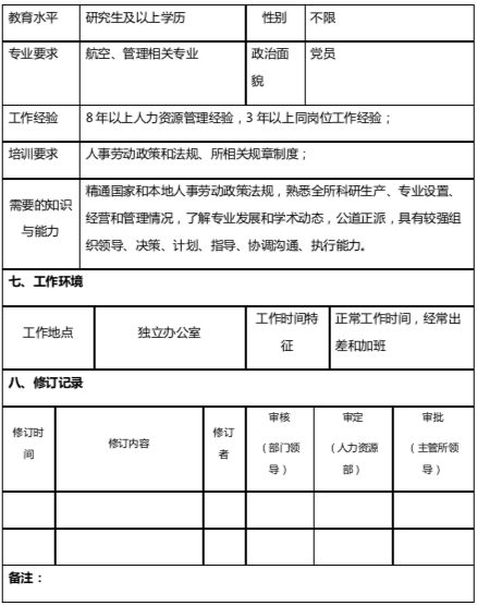 表:人力資源部部長(zhǎng)崗位說明書
